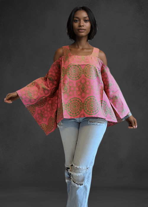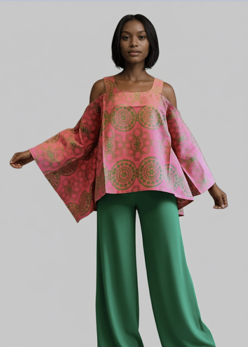 Cold Shoulder Blouse - Pink and Green